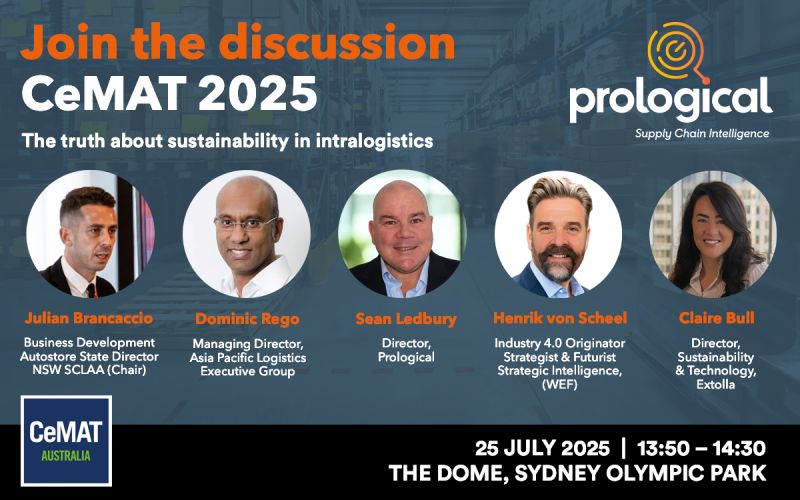 Don’t forget that Sean Ledbury MAICD MAIP, Director at Prological will be speaking at CeMAT AUSTRALIA on Thursday this week. Sean will be discussing sustainability in intralogistics with Julian Brancaccio, Dominic Rego, Henrik von Scheel and Claire Bull on 13.50 in the Knowledge Theatre. See you there!